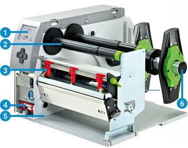 透過前方面板的 USB 接口,可快速簡易地安裝模塊化配件,譬如裁刀、外掛回卷器、剝離傳感器及貼標(biāo)手臂等。所有外圍配件皆以螺絲固定于 2 個(gè)卡榫上來連接至條碼打印機(jī)。