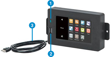 2 USB 插槽 維修用 U 盤或 U 盤專用,可上傳檔案至機(jī)身內(nèi)建快閃記憶體。